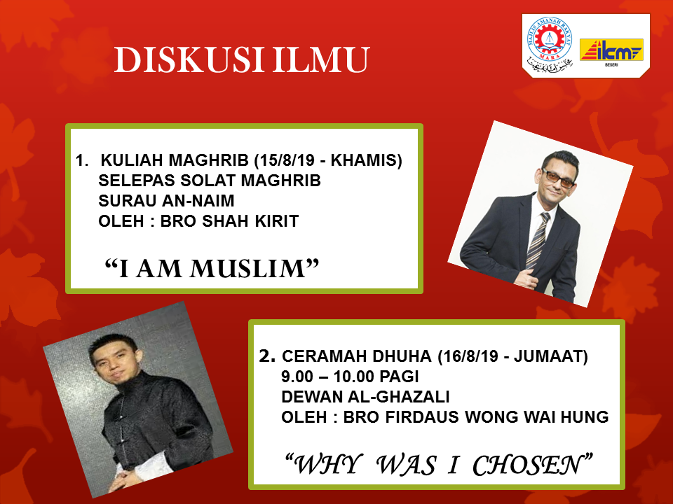 IKM Beseri dengan unit Pendidikan Islam telah mengadakan 1 Kuliah Magrib Dan 1 Kuliah Dhuha kepada sataf-staf dan pelajar IKM Beseri Pada 15 OGOS 2019, Adalah sangat istimewa dengan kehadiran seorang tokoh mualaf terkemuka iaitu Bro Shah Kirit. Beliau menyampaikan sebuah ceramah yang sangat ilmiah dengan bertajuk 'I Am Muslim' kepada siswa-siswa IKM Beseri.
